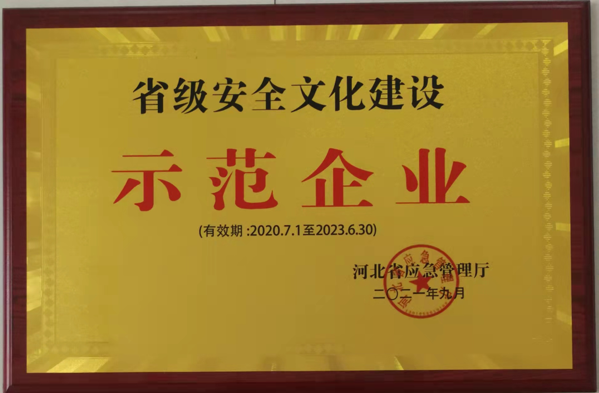 省級安全文化建設示范企業(2021.7.1-2023.6.30)